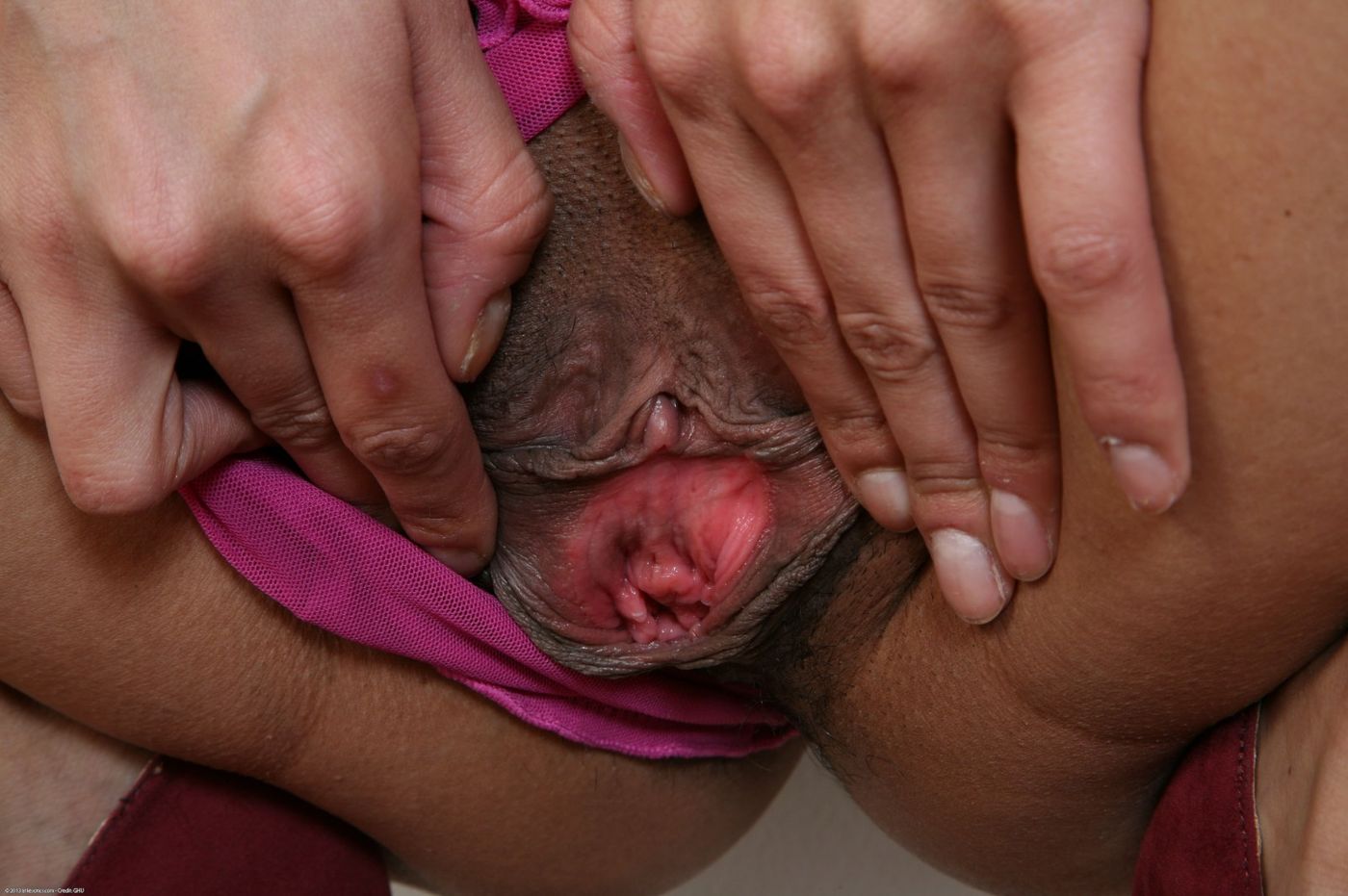Asha Khan fingers snatch on pink bed