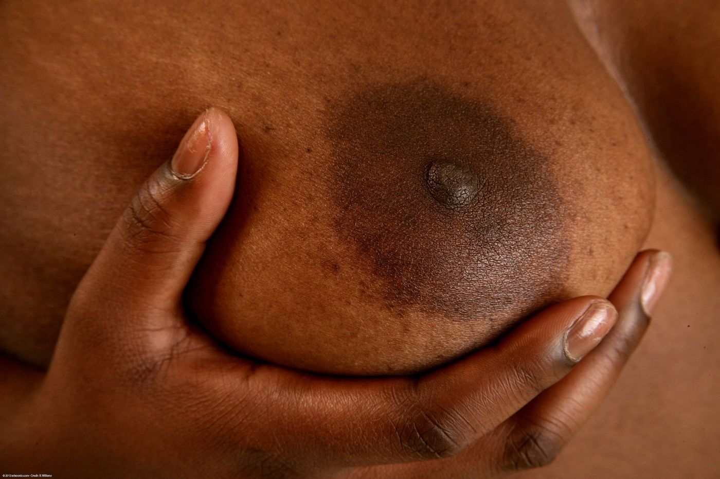 - Description: Chocolate strips down and starts teasing her huge tits with that vibrator to make herself soaking wet. She moves it down to her clit, letting you see that bush up close before she cums. Brought to you by R Williams.