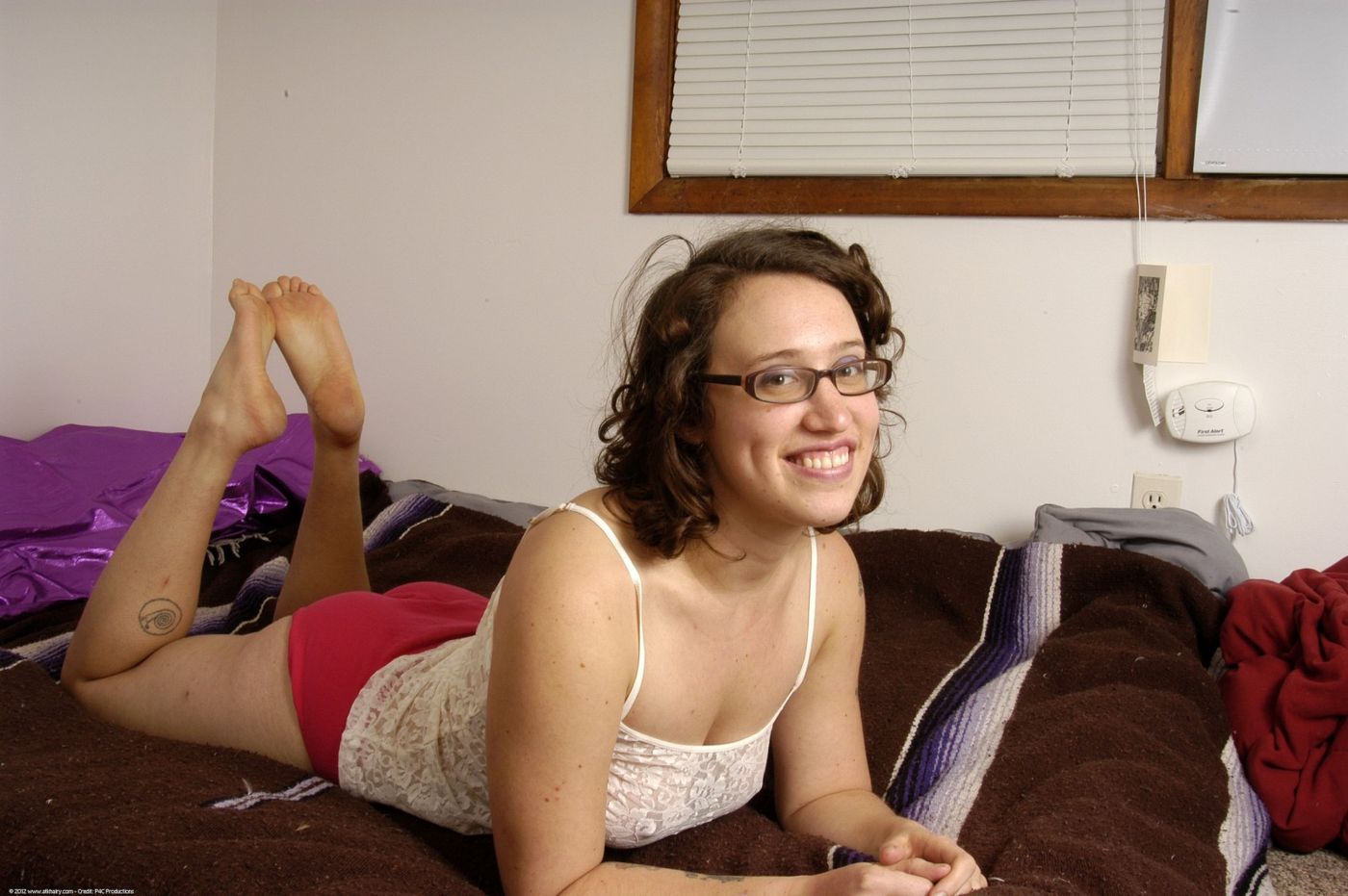 - Description: Hairy girl in glasses shows off her pussy