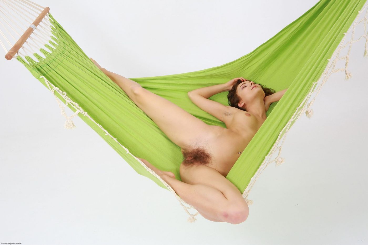 Ricka masturbates in a green hammock