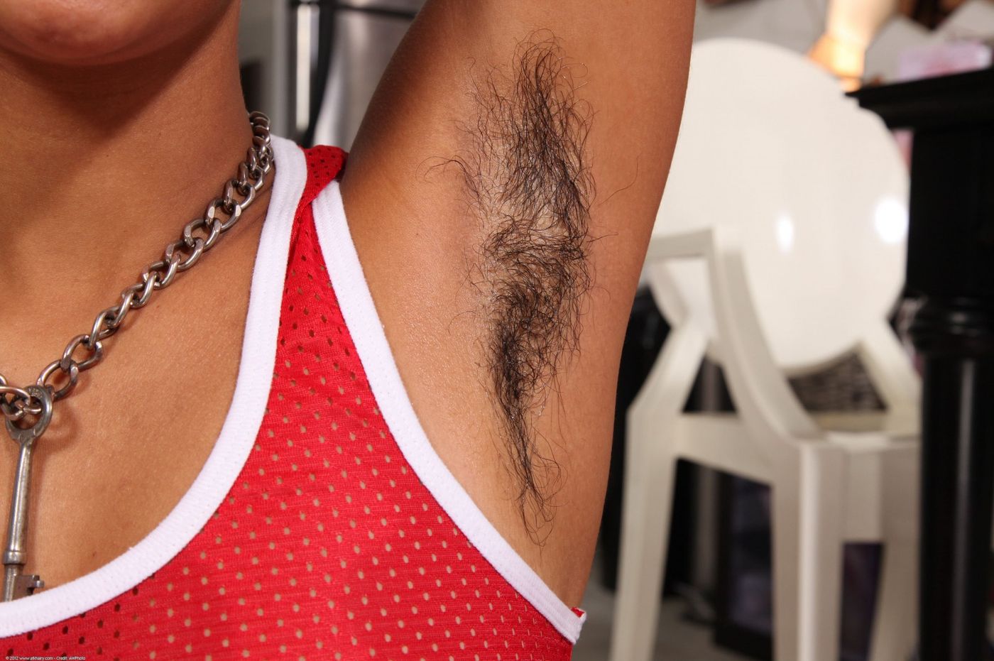 Hairy Exotic woman takes off her lace dress